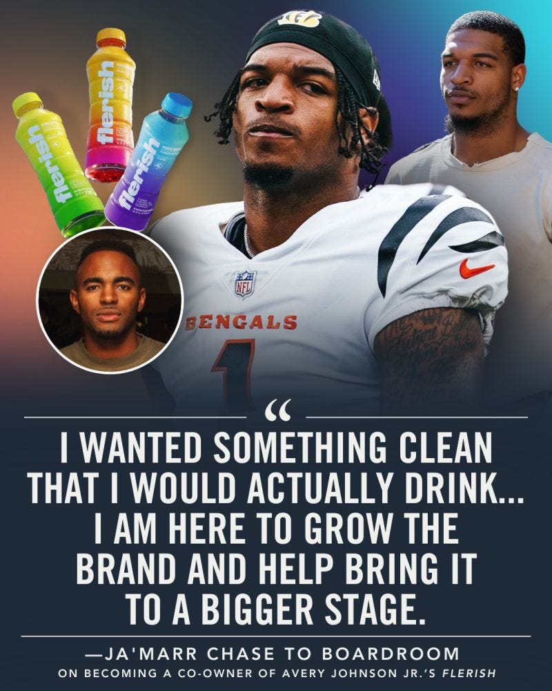 NFL WR Ja’Marr Chase joins Flerish Hydration — Bengals star Ja’Marr Chase took an ownership stake and partnership role with performance-first hydration brand Flerish, aligning athlete ownership with a clean hydration platform rather than just a promotional deal.