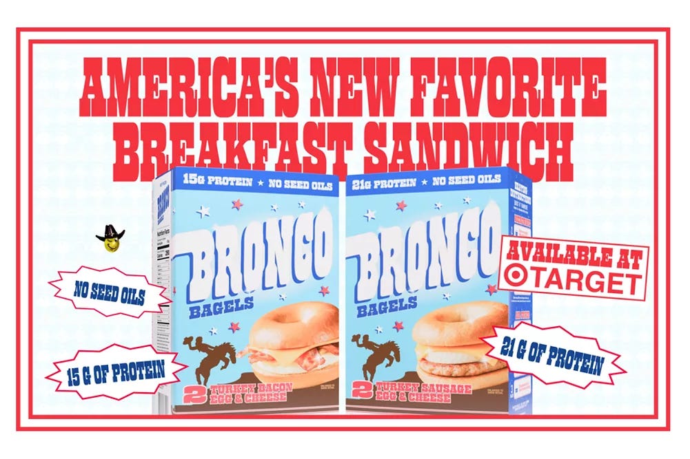 DropOut Companies launches Bronco: Bronco, the second national brand from DropOut Companies following Jams, has officially rolled out a high-protein frozen breakfast bagel sandwich lineup nationwide with exclusive endcap placement at Target. Products include Turkey Sausage, Egg & Cheese and Turkey Bacon, Egg & Cheese formats, positioned as a modern take on classic breakfast with high protein and cleaner ingredients. This marks DropOut’s second big brand rollout in six months.